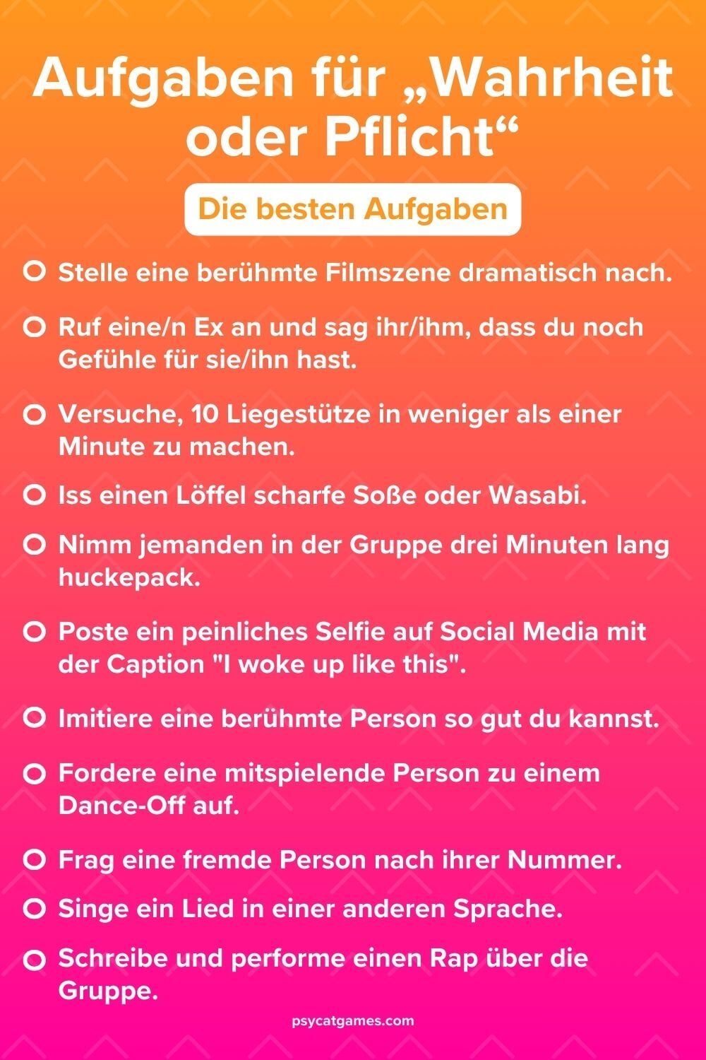 - 😛 Verrückte Pflichtaufgaben für “Wahrheit oder Pflicht”