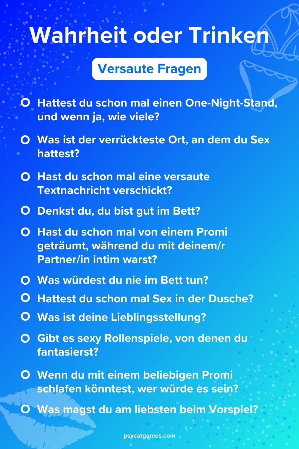 Bock, euer “Wahrheit oder Trinken” Spiel auf ein neues Level zu hieven? Eine knackige Auswahl an frechen Fragen ist der Schlüssel, um bei eurer Party für eine Menge Spaß und intime Momente zu sorgen. Hier ein paar Ideen, um den Ball ins Rollen zu bringen: