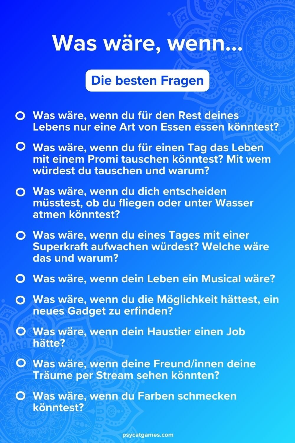 - ⭐️ Erstaunliche “Was-Wäre-Wenn” Fragen für alle Altersgruppen