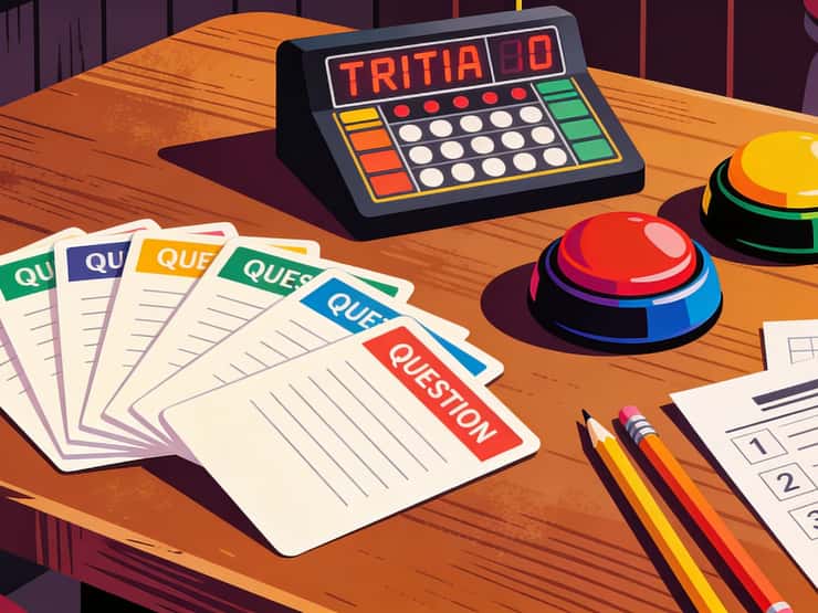 Mix difficulty levels so every team gets some right, include fun bonus rounds like picture or music rounds, keep the pace brisk, add humor between questions, and give small prizes to last place too. The goal is entertainment, not an exam.