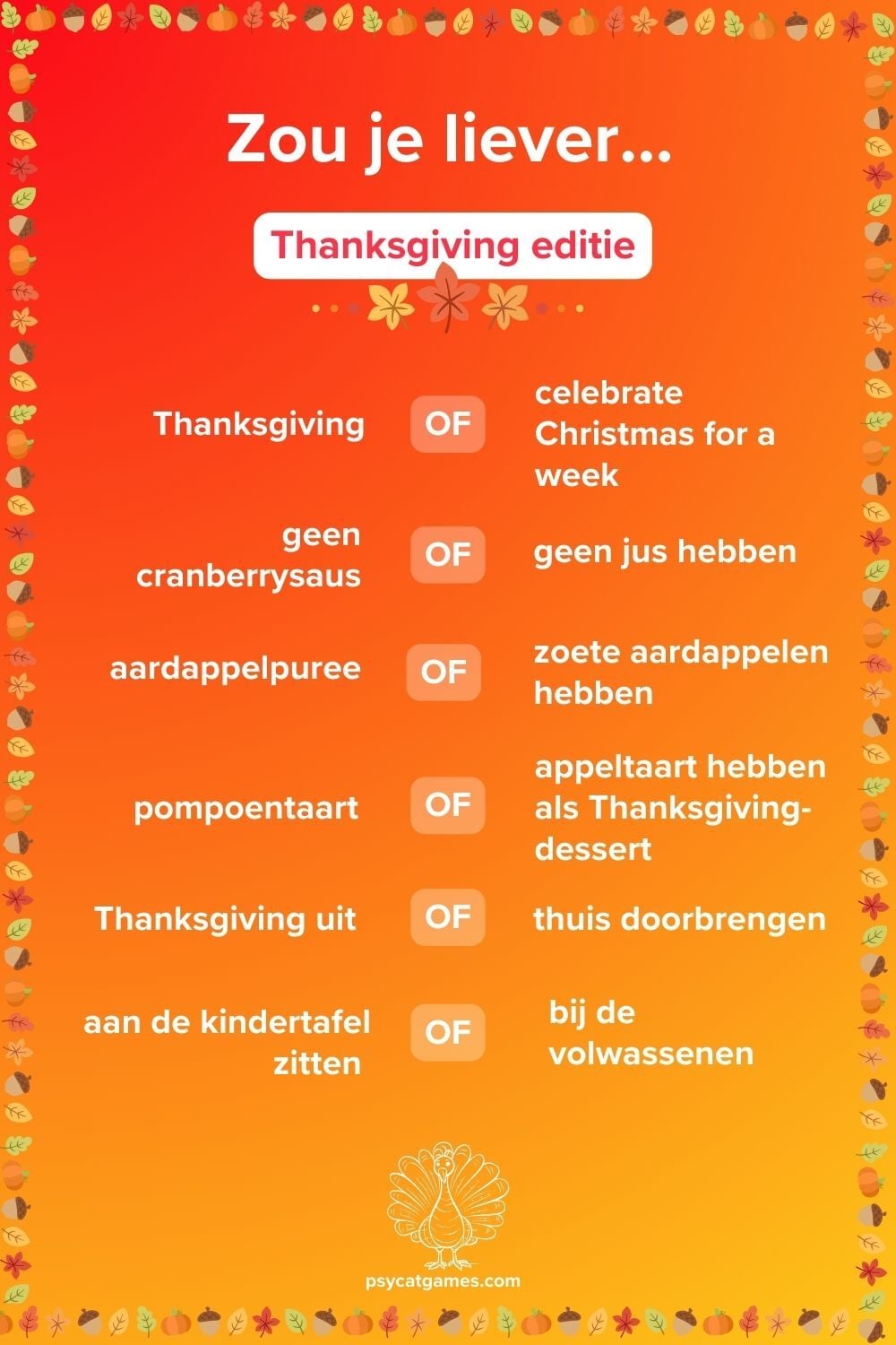 - 🕹️ Speel Thanksgiving “Zou je liever?” online