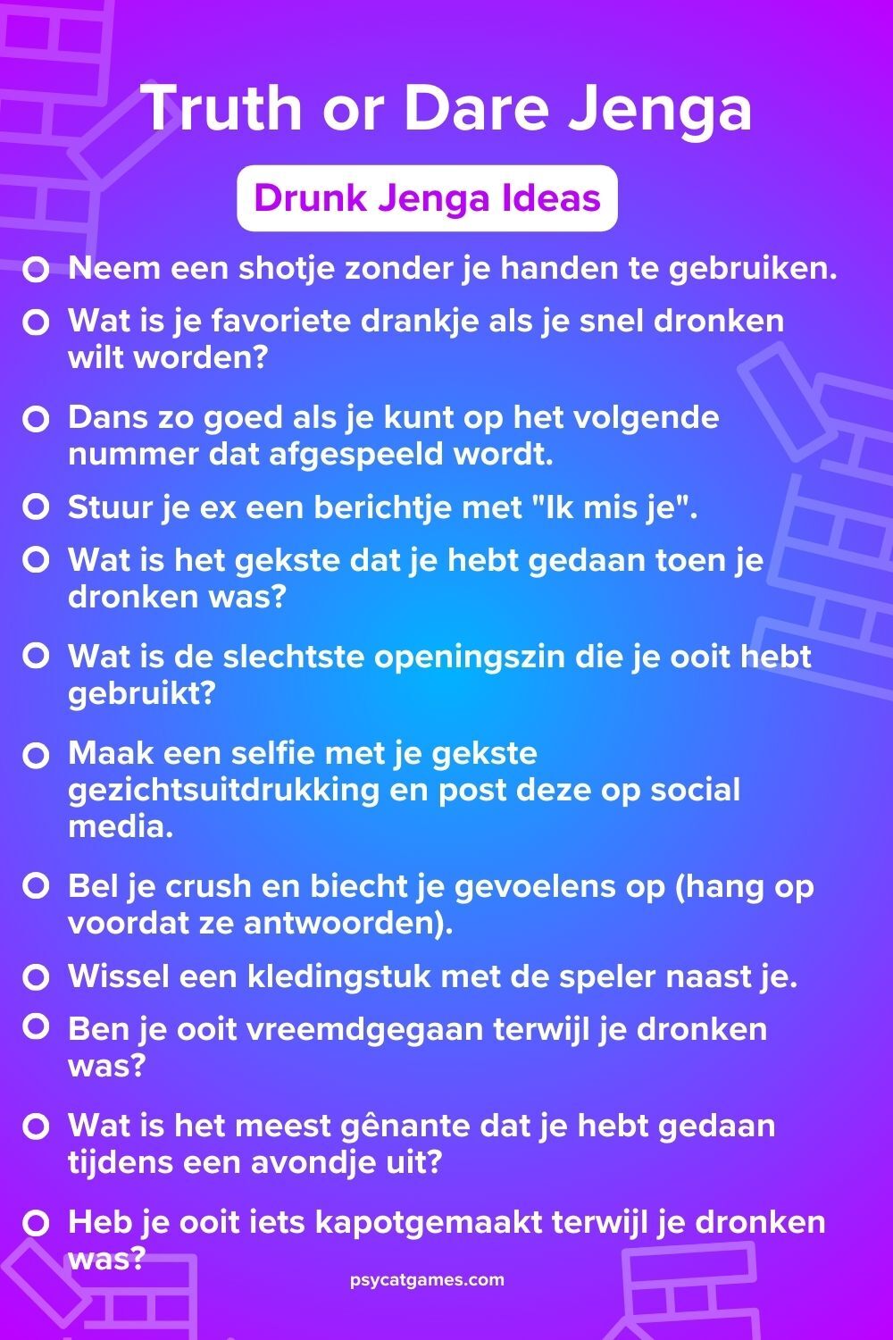 - 🍷 Dronken “Jenga” ideeën voor volwassenen