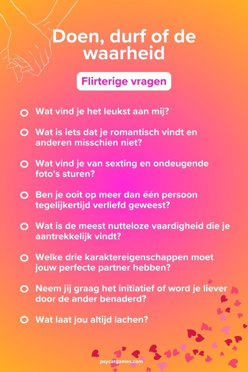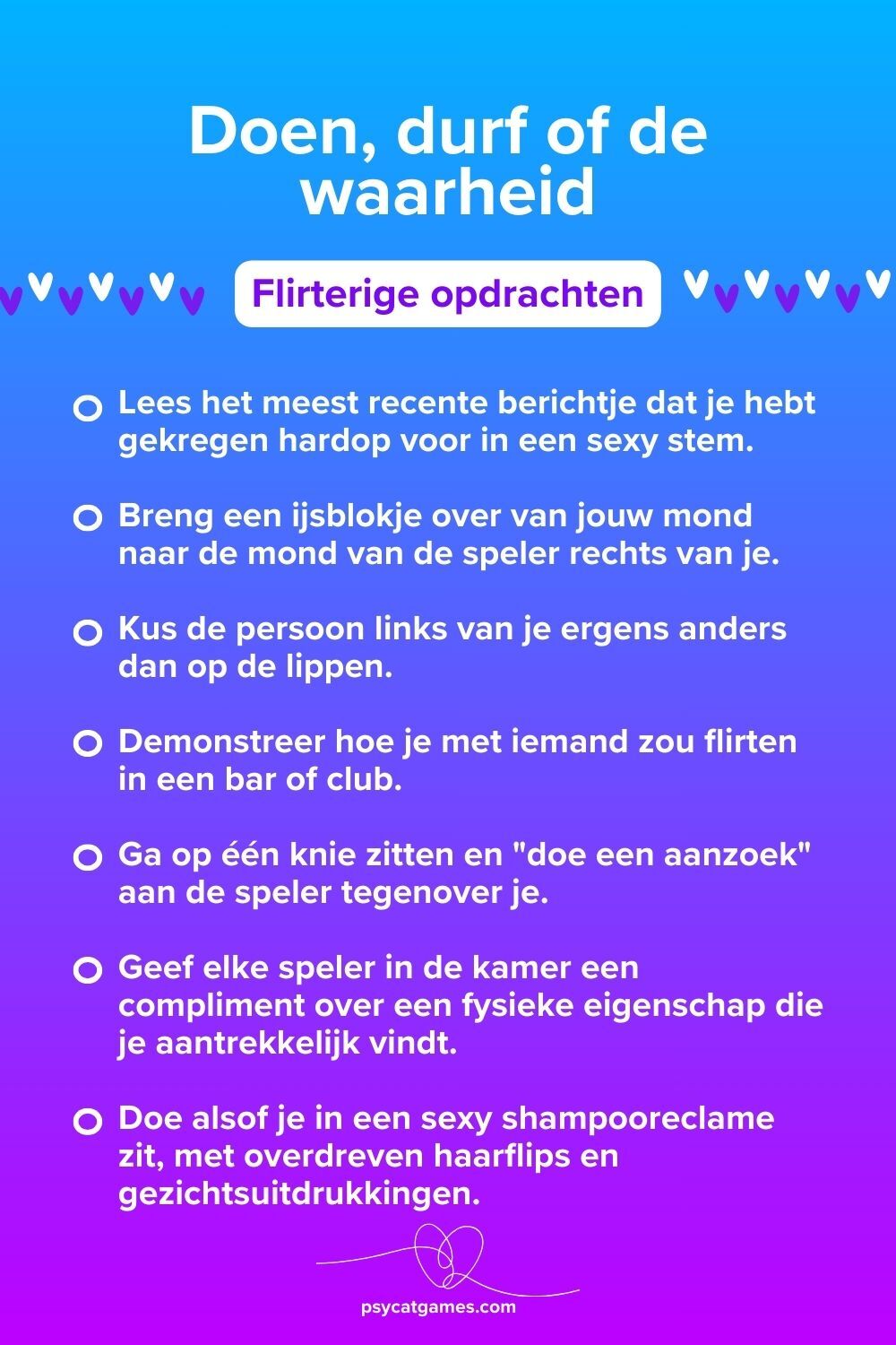- 💞 Flirterige “Doen, durf, of de waarheid” vragen