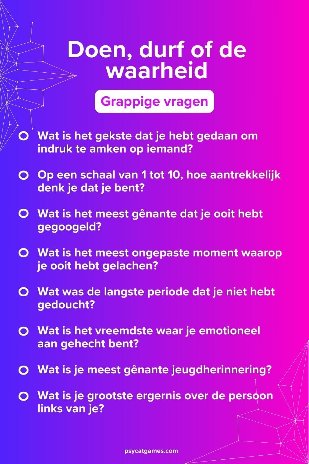 - 🤣 Grappige “Doen, durf, of de waarheid” vragen