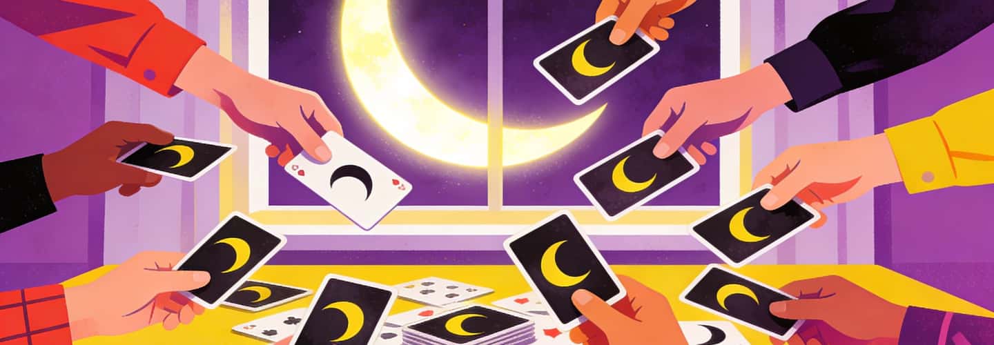 На перший погляд, «Сходження Пів Місяця» звучить як назва фентезі-роману або надто емоційного концептуального альбому. Але ні — це насправді карткова гра, яка спочатку підкрадається своєю стратегією, а потім сліпить тебе хаотичним веселощами. Уяви собі Уно, але з красивішими картами, більшою кількістю зрад і дикішим фіналом.